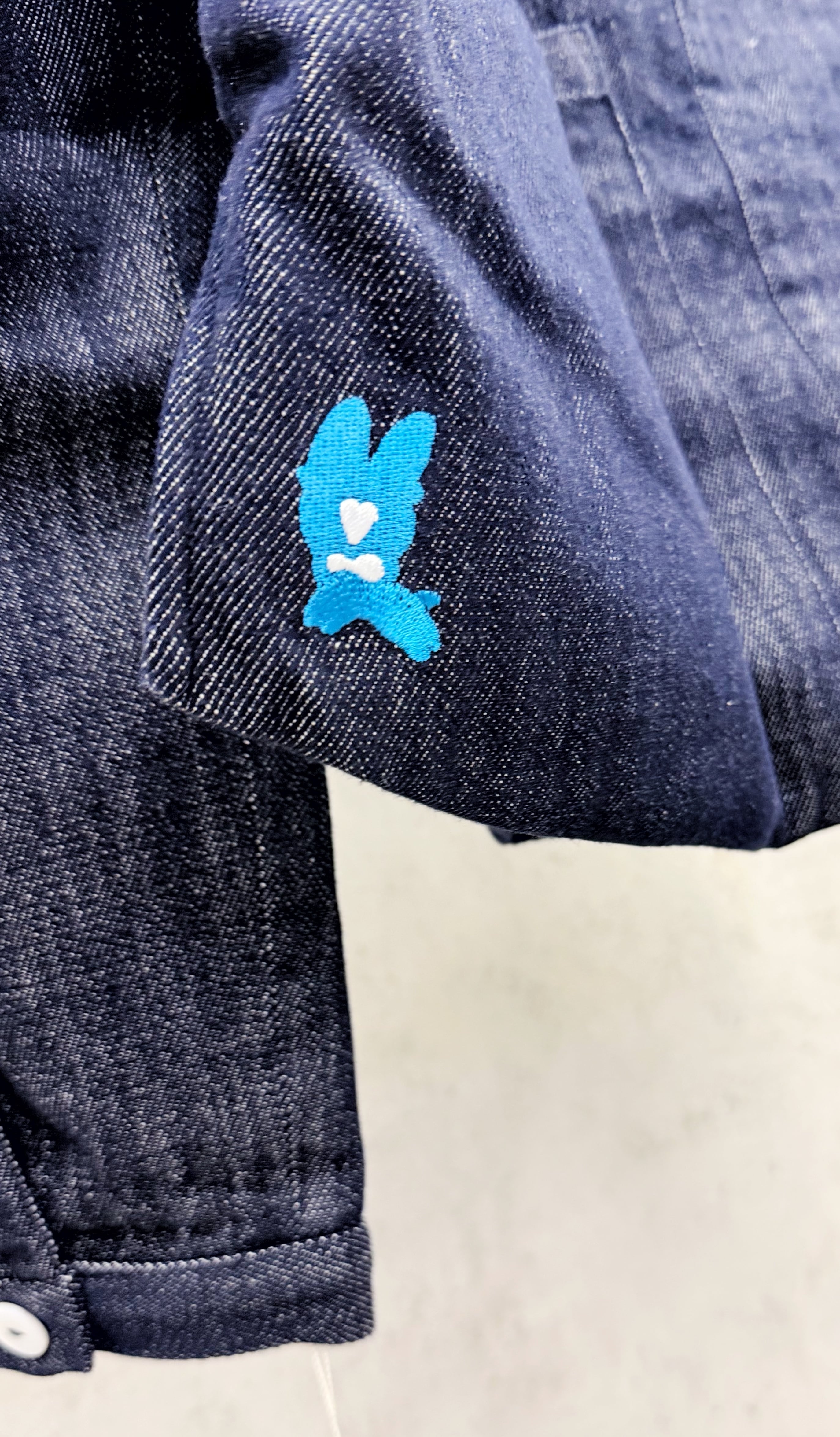 愛らしい犬の刺繍が施されたデニムジャケットです。